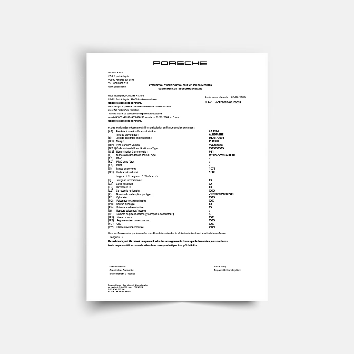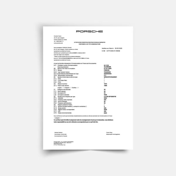 Document demandé par l’ANTS pour immatriculer en France votre Porsche importée de l’étranger ou pour l’exportation.